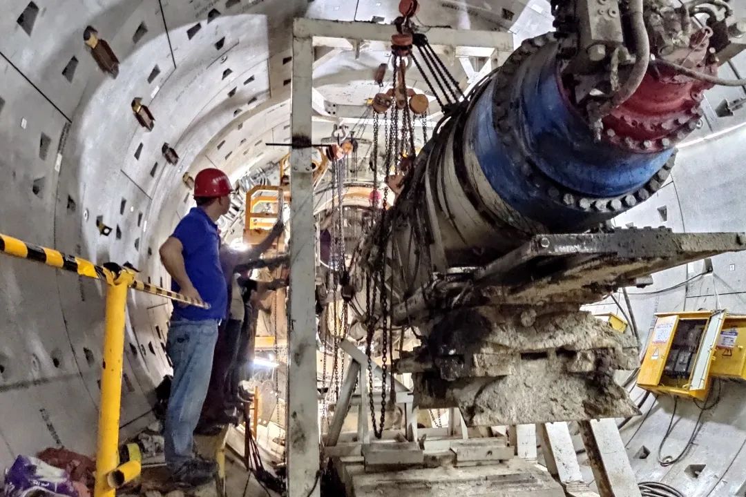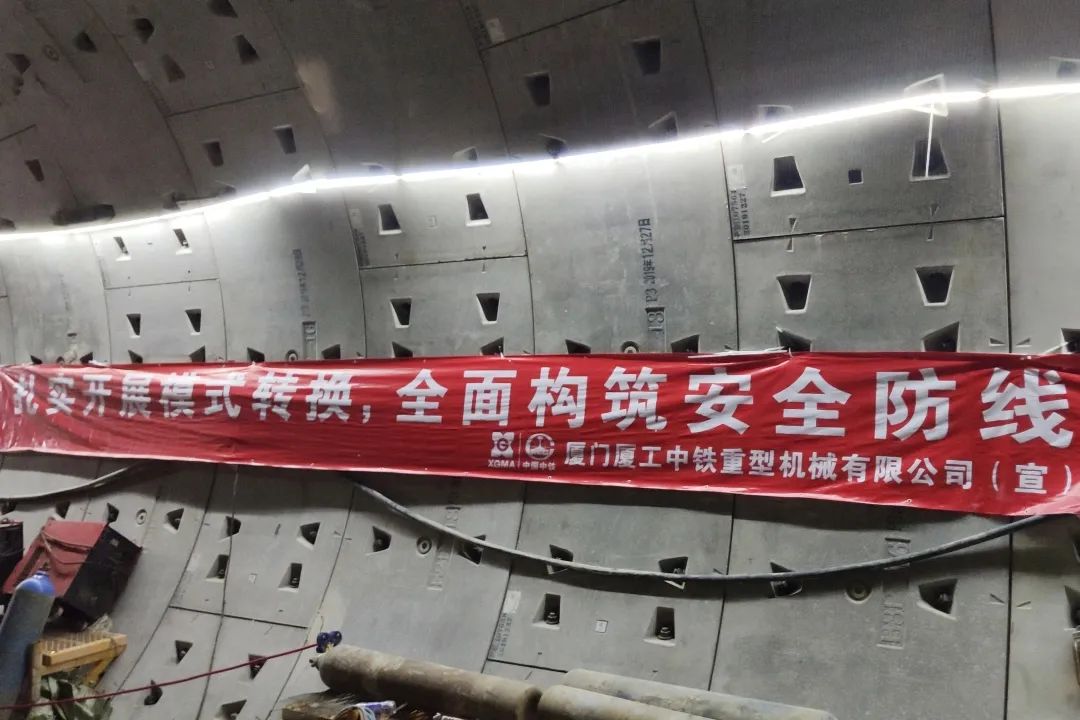 期間,管理人員、施工人員在現(xiàn)場(chǎng)進(jìn)行交接,并做好詳細(xì)的技術(shù)交底和安全交底,確保交接時(shí)實(shí)現(xiàn)“無縫”對(duì)接,安全高效推進(jìn)施工進(jìn)度。通過5天兩班的晝夜奮戰(zhàn),廈工中鐵專業(yè)團(tuán)隊(duì)在直徑6.2米的有限空間內(nèi),克服了空間狹小和洞內(nèi)條件惡劣等一系列難題,完成了重達(dá)30噸、長(zhǎng)13米的螺旋輸送機(jī)的拆除與運(yùn)輸工作。